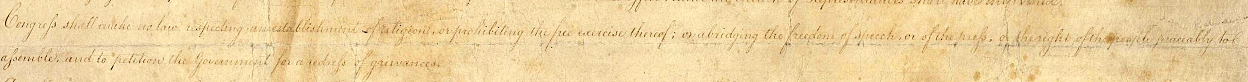 Congress shall make no law respecting an establishment of religion, or prohibiting the free exercise thereof; or abridging the freedom of speech, or of the press; or the right of the people peaceably to assemble, and to petition the Government for a redress of grievances