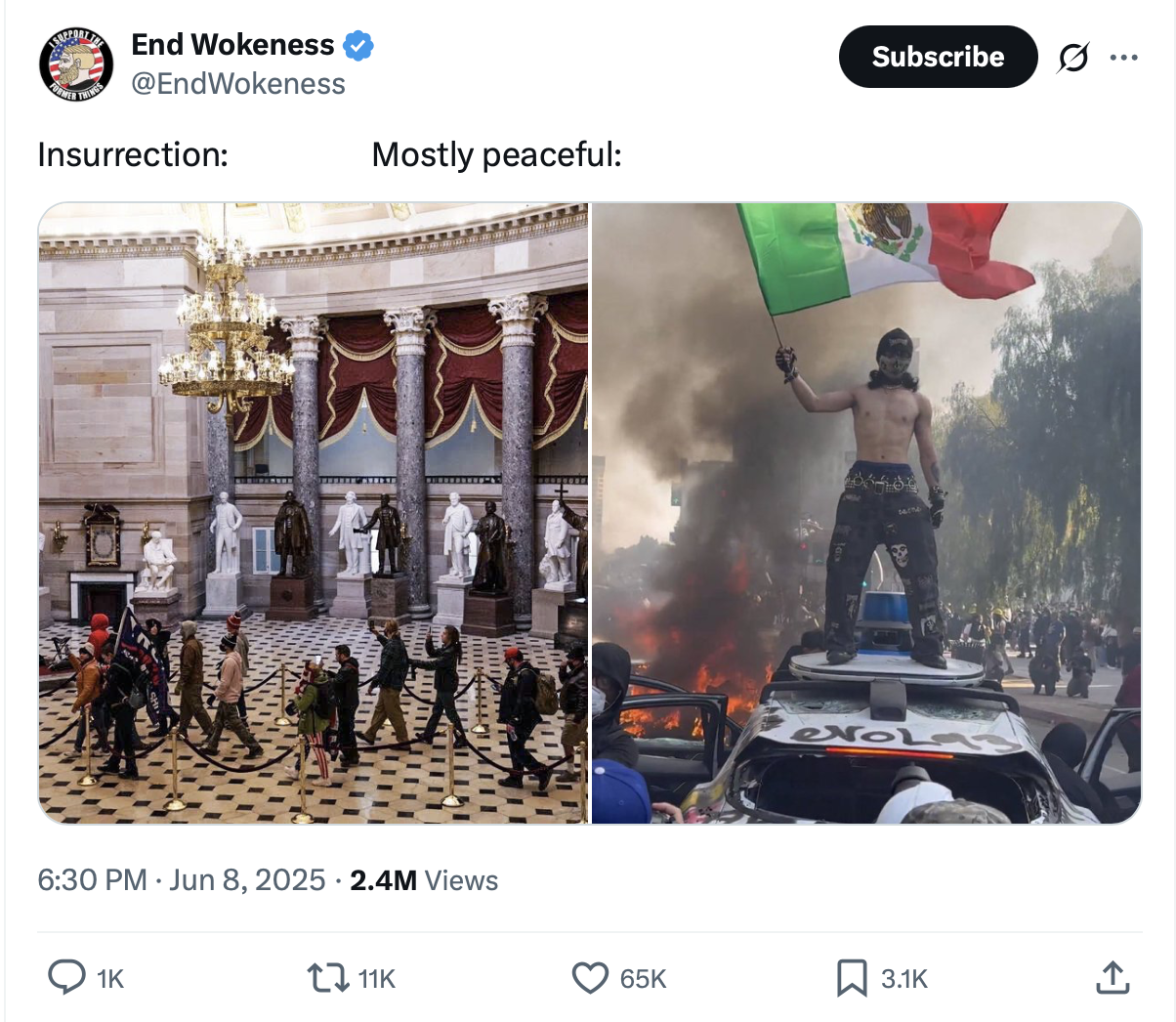 What the hell did anyone think was going to happen? We let millions of illegal aliens enter our country. They knew they were breaking the law and they also knew we were completely aware they were breaking the law and did nothing about it. What was the first take-home message they learned? It’s ok to break the law in the United States. In fact, if you do you will be given more rights than legal citizens. In my community whenever there is a sporting event or any kind of holiday dozens of cars drive around town carrying large Mexican flags. Try driving around Mexico City with a large American flag. Several of my favorite California Globe commentors above are arguing for Gavin Newsom’s arrest on multiple federal charges. Newsom is actually taunting the federal government to do it. I say yes. Yes, do it! Throw the book at him and come down hard on the rioters.