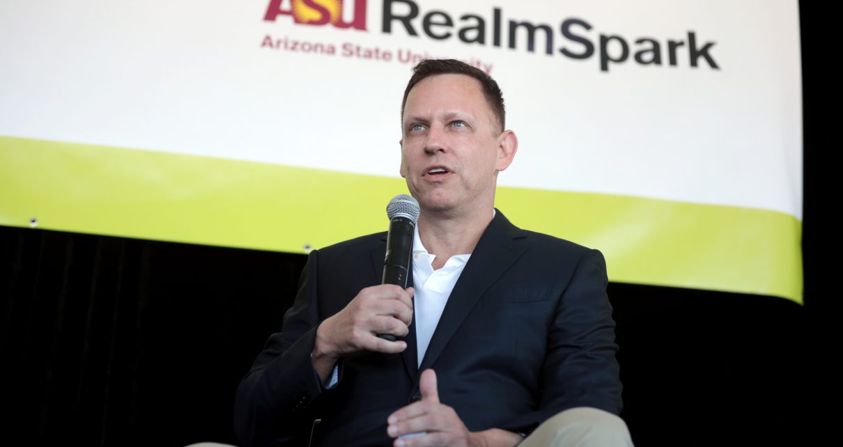 Peter Thiel speaking with attendees at the 2022 Converge Tech Summit at The Waste Management Phoenix Open at the Skybar in Scottsdale, Arizona, February 9, 2022. (Photo: Gage Skidmore)