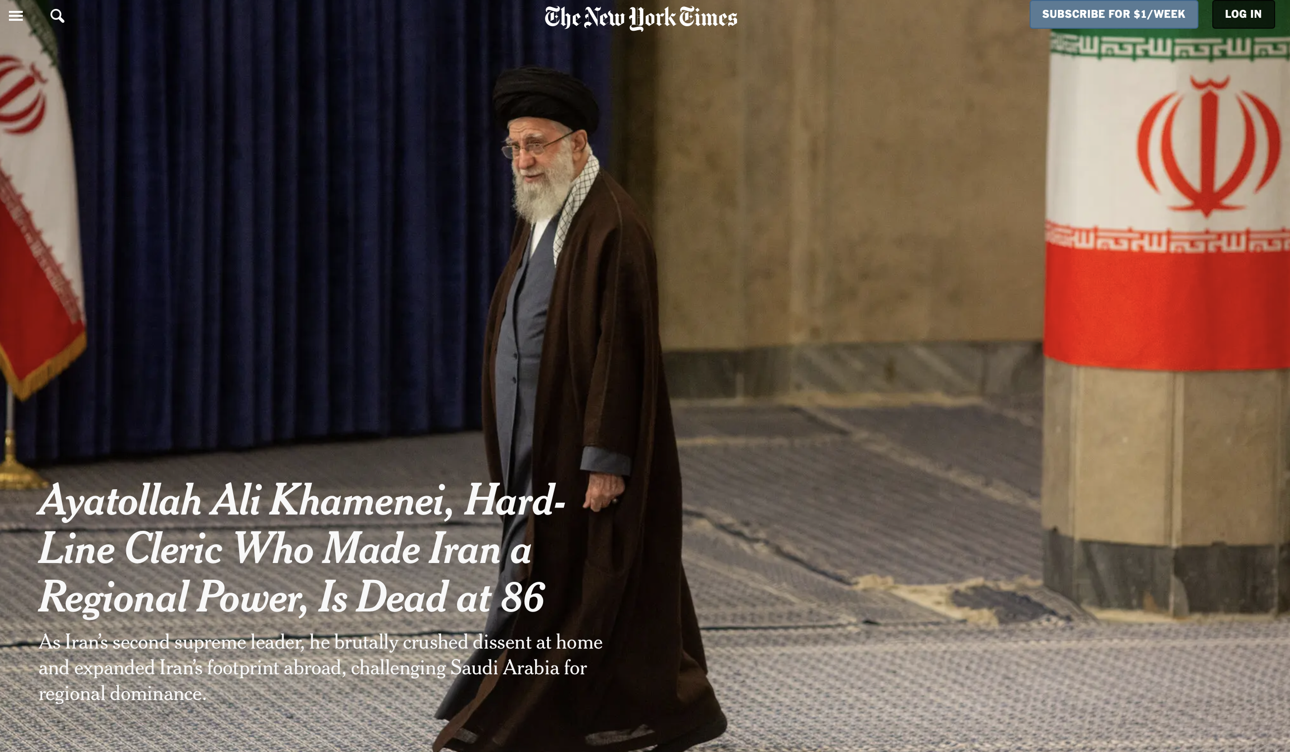 Ayatollah Ali Khamenei, Hard-Line Cleric Who Made Iran a Regional Power, Is Dead at 86