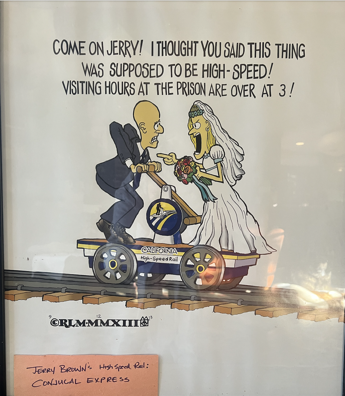 This is a cartoon created by cartoonist Ross Mayfield, after I called the High Speed Rail segment from Bakersfield to Madera “the Conjugal Express.”