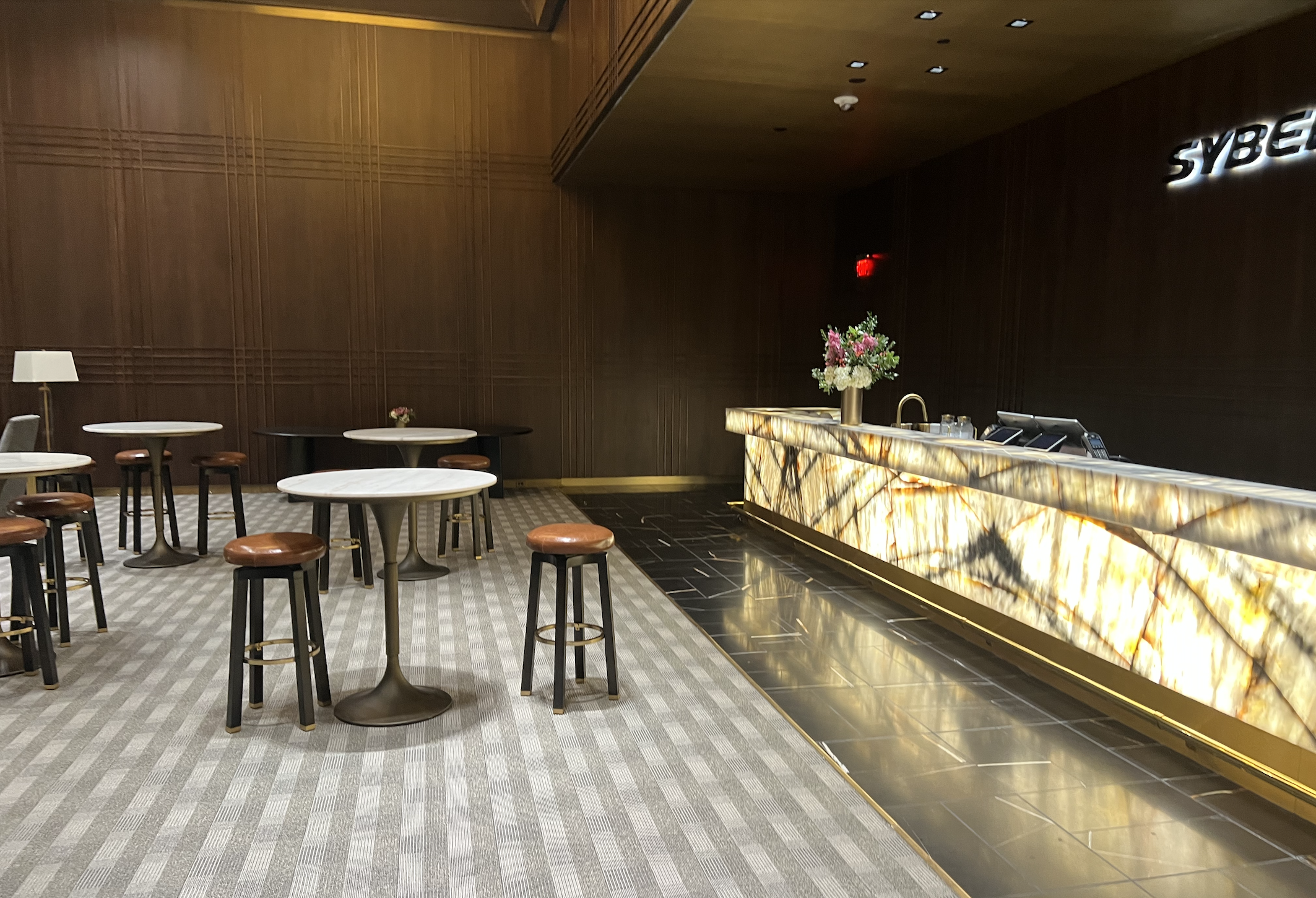 The Trump Kennedy Center has unfortunately been underutilized, and can and should be used as a venue for many different types of events– from the fabulous 360 degree rooftop space, to the rooftop restaurant and bar and new speakeasy, to the open spaces of the grand entrance, and concert hall. Center Circle lounges were allowed to fall into disrepair. Recently, Syberjet masterfully renovated a lounge, bringing it into the 21st Century and turning the space into a welcoming and beautiful space to enjoy.