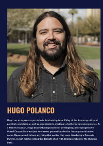 First up was Hugo Polanco, a lobbyist with Creosote Partners representing Rural Arizona Engagement (RAZE), a nonprofit focused on civic education and voter mobilization in rural communities. Polanco, the son of Mexican immigrants who grew up in Phoenix, has a history of progressive advocacy. He previously ran the successful 2016 campaign for Adrian Fontes, electing the first Latino to a Maricopa County office, and has lobbied against measures like a 2020 sanctuary cities ban, calling such policies “racist.”