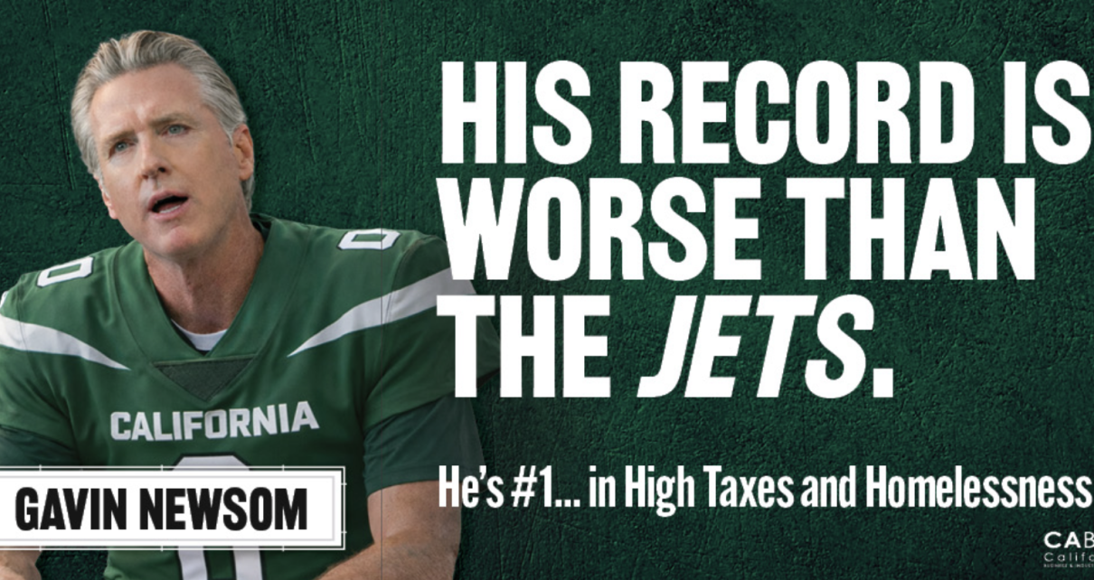 “Worse Than the Jets.” CABIA Times Square Billboard Targets Gavin Newsom. (Photo: CABIA.org)