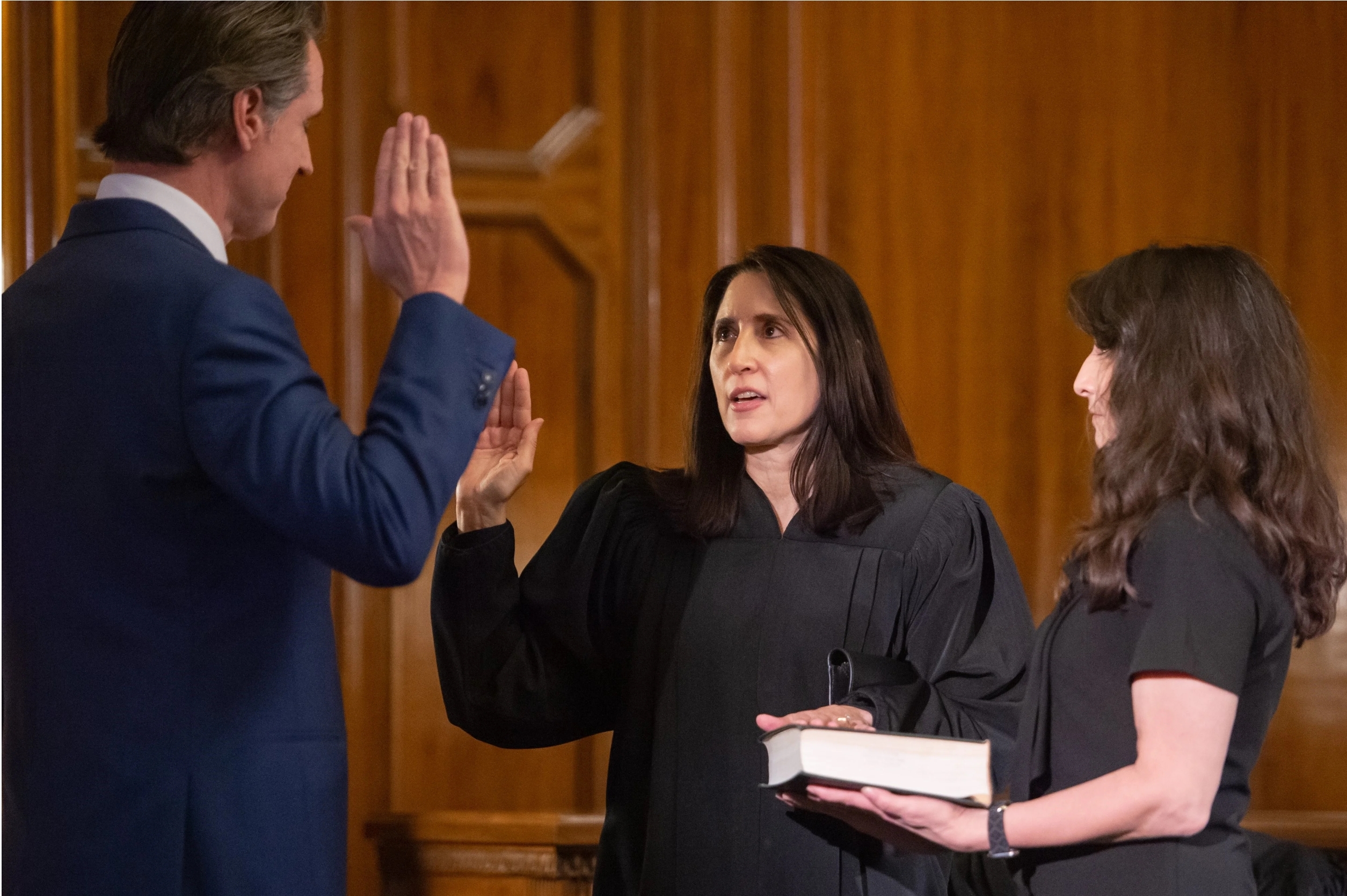 In addition to Newsom, Supreme Court Justices Carol Corrigan, Goodwin Liu, and Leondra Kruger also attended the swearing in in Sacramento, with guests such as Fourth Appellate District Administrative Presiding Justice Judith McConnell speaking on behalf of the new Justices.