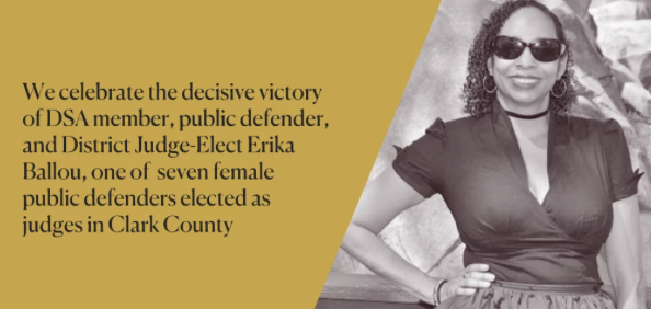 Socialist celebrate the election of Clark County District Court Judge Erika Ballou (Photo: DSALV)