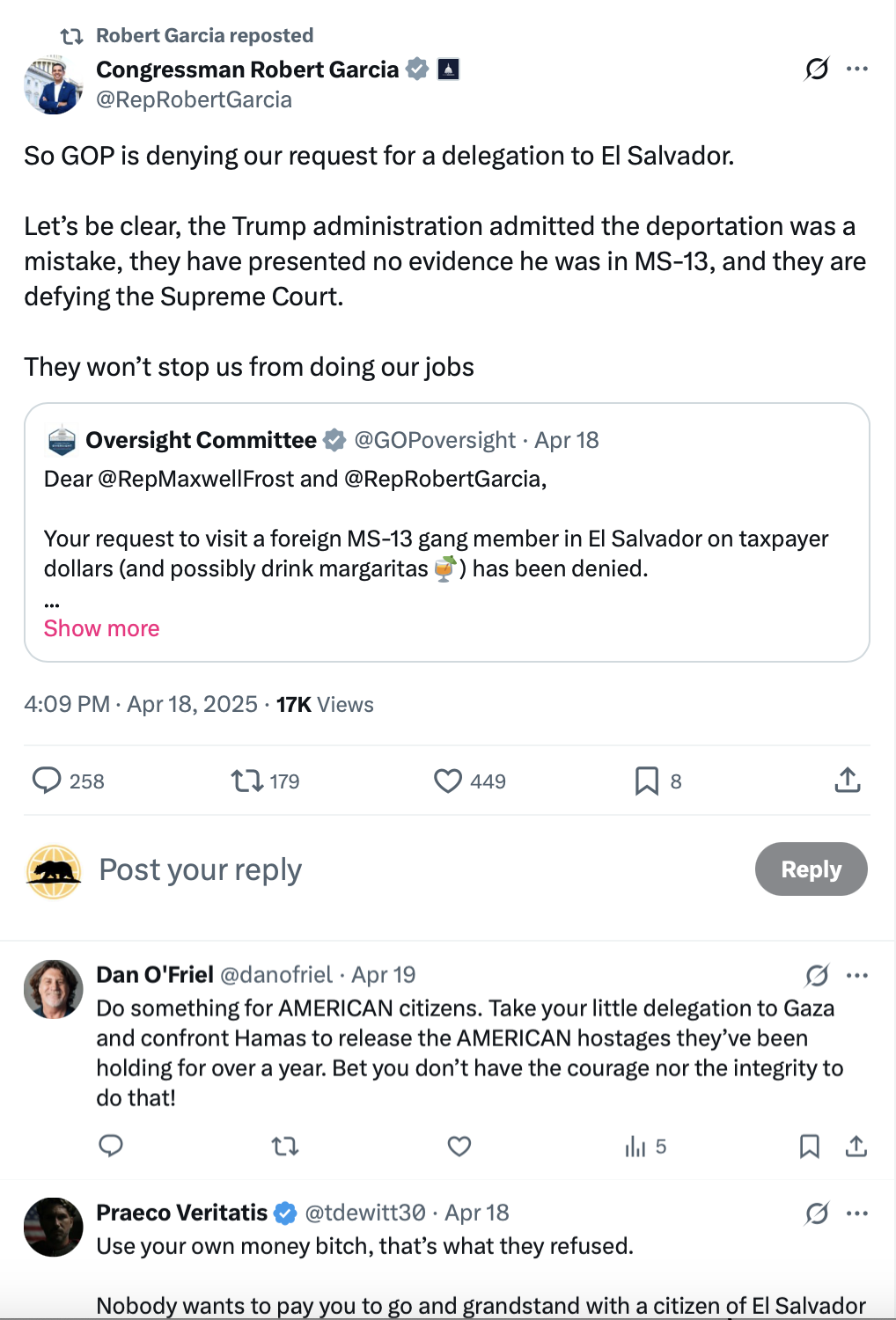 Here are a few more responses to Rep. Robert Garcia’s whiney X post: