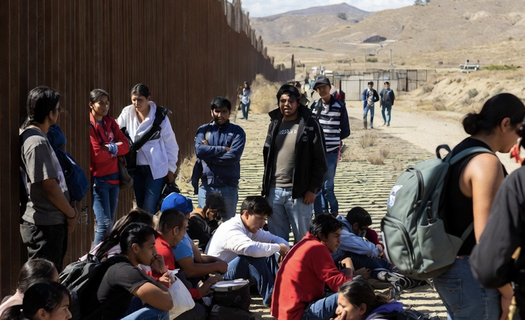 Illegal immigrants crossing at the California Mexico border. (Photo: Grok)
