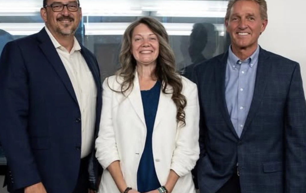 Gina Swoboda pictured between SOS Fontes and Former AZ Sen. Jeff Flake. (Screenshot)