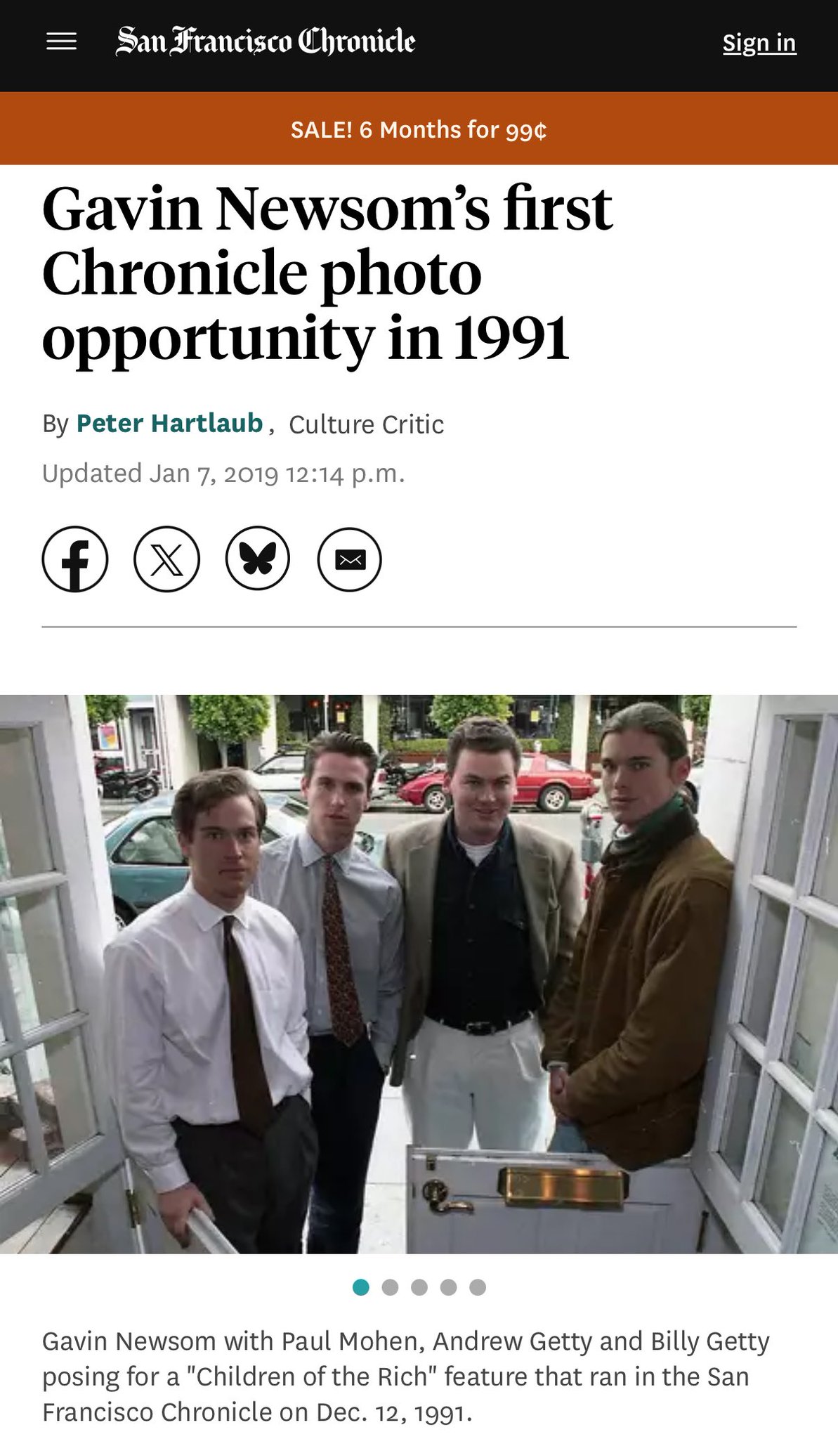 Be sure to reread our October article, which managed to refute most of the Vogue Magazine article before it was even written. Gavin Newsom is desperate to rewrite his own history before the rest of the country finds out what we in California have known for decades: Gavin Newsom was Growing up Getty.