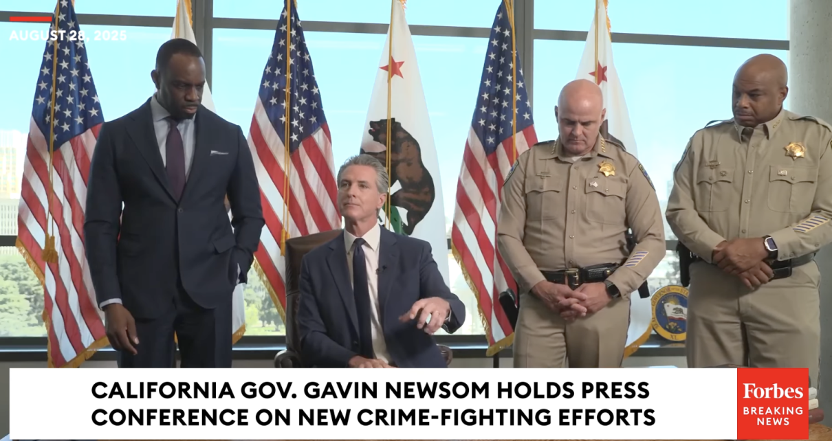 Governor Gavin Newsom (D-CA) holds a press conference to announce surge in law enforcement (Photo: screenshot YouTube)