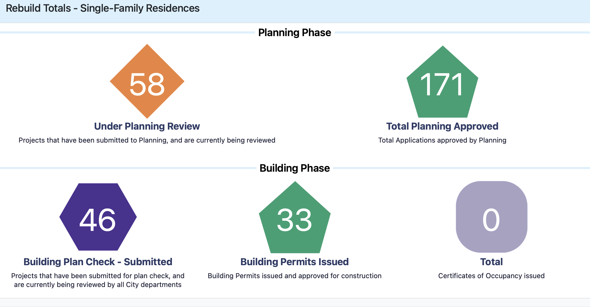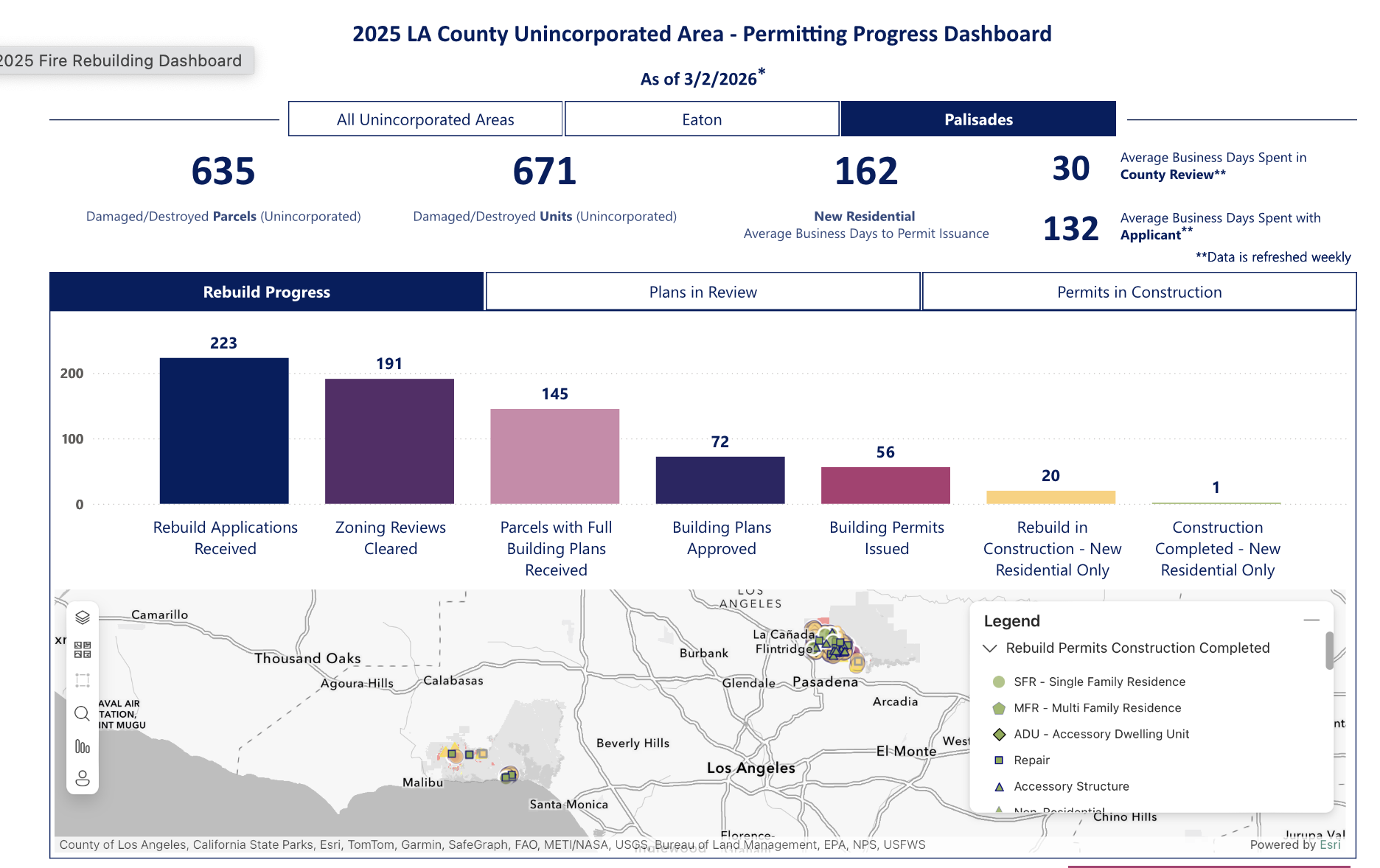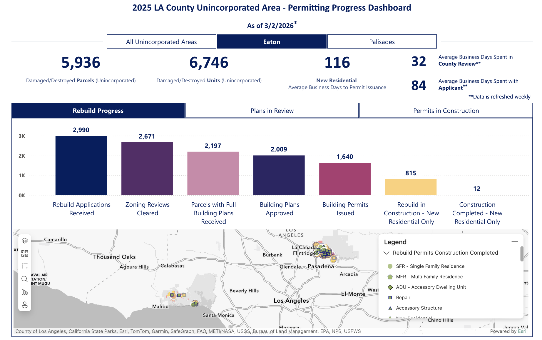 And here is the dashboard for Eaton where 12 construction rebuilds have been completed: