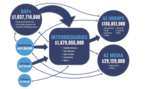 The report shows that national donors, including Fidelity Charitable, Silicon Valley Community Foundation, and Rockefeller Philanthropy Advisors, channel more than $1 billion collectively into intermediary networks such as Arabella Advisors/Sunflower Services, Tides Nexus, and Soros/Wyss-backed networks that then deploy funds to Arizona organizations.