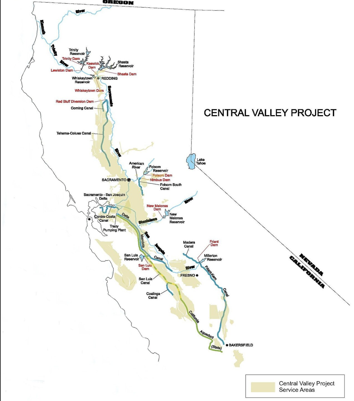 The biggest nodes in California’s massive, manmade plumbing system are the two pumping stations on the south end of the delta. The bigger one, part of the California State Water Project and feeding the California Aqueduct, is the Banks Pumping Plant, it was constructed in the 1960s and began operating in 1969. The capacity of this pumping plant is 20,430 acre feet per day. The other one is the Jones Pumping Plant, a federally owned facility that feeds the Delta-Mendota Canal. Construction began in the late 1940s and it began operating in 1951. At full capacity, it can move 8,500 acre feet of water per day.