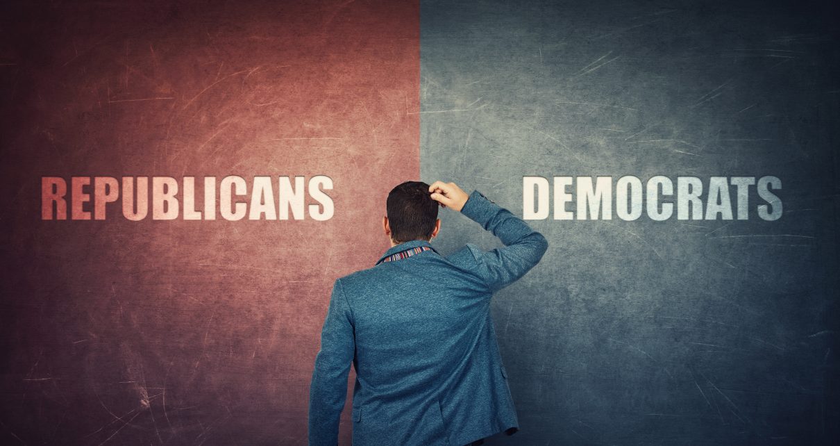 Democrats and Republicans, red vs blue sides. (Image: StunningArt/Shutterstock)